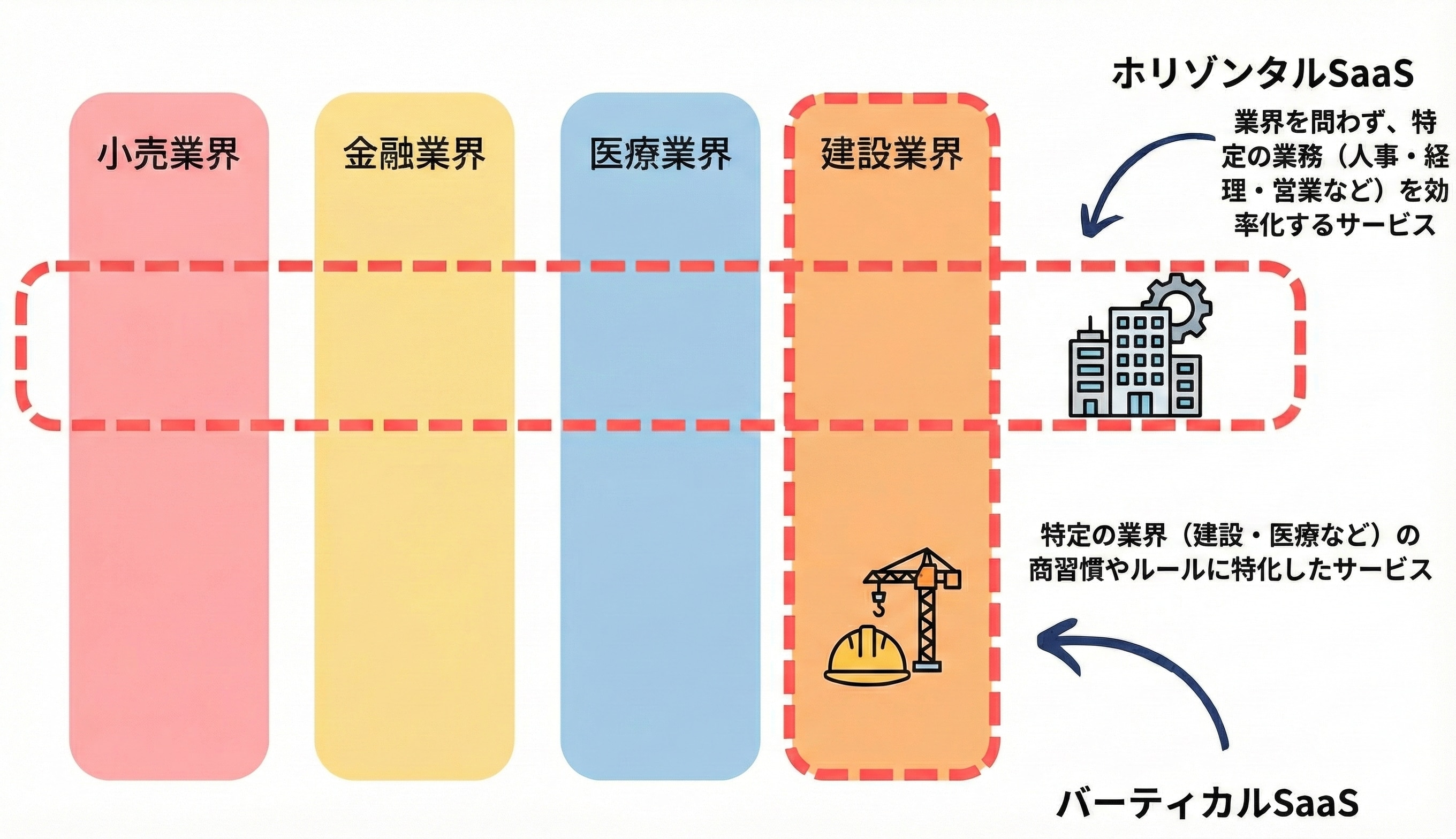 バーティカルSaaSとは、医療・建設・不動産など、特定の産業の「深い悩み」を解決するために設計されたサービスです。
