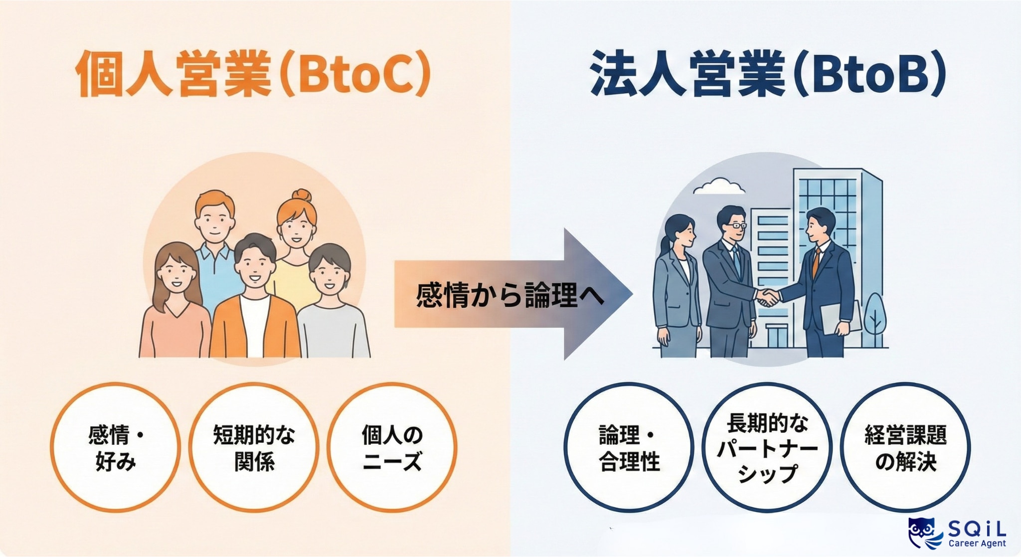 法人営業と個人営業の違い BtoBとBtoCを5項目で比較