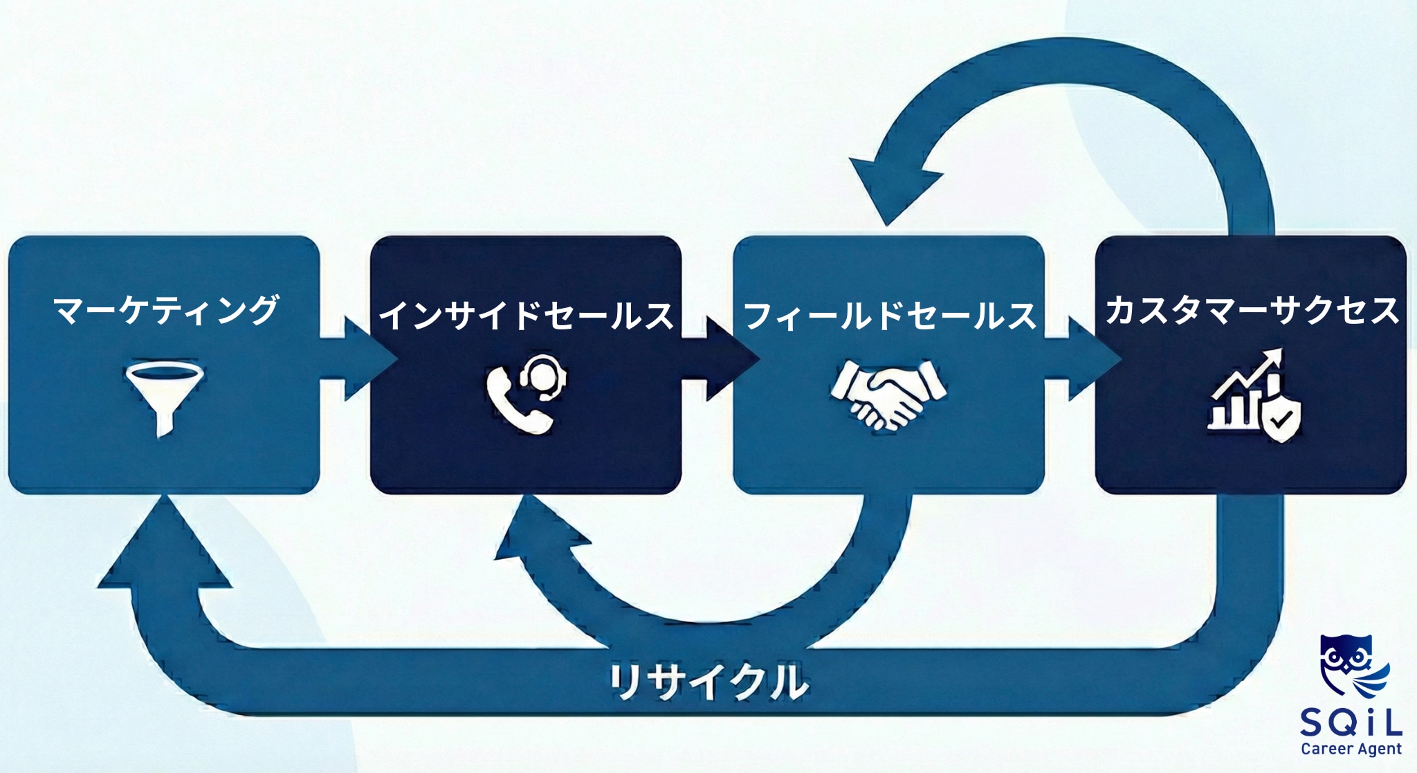 顧客の生の声を一番多く聞くポジションであるため、フィールドセールスへのステップアップはもちろん、マーケティングやカスタマーサクセスなど、どの部署へも展開しやすい「キャリアのハブ」となる職種です。